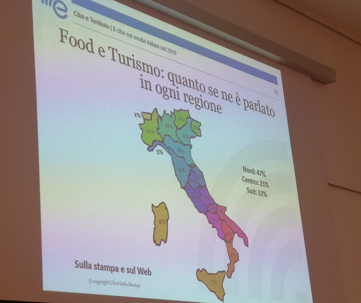 L’alto aspetto messo sotto i riflettori dal rapporto è il turismo legato al cibo. Un grafico mostra il legame tra Food e Turismo, “quando se ne è parlato in ogni regione”.