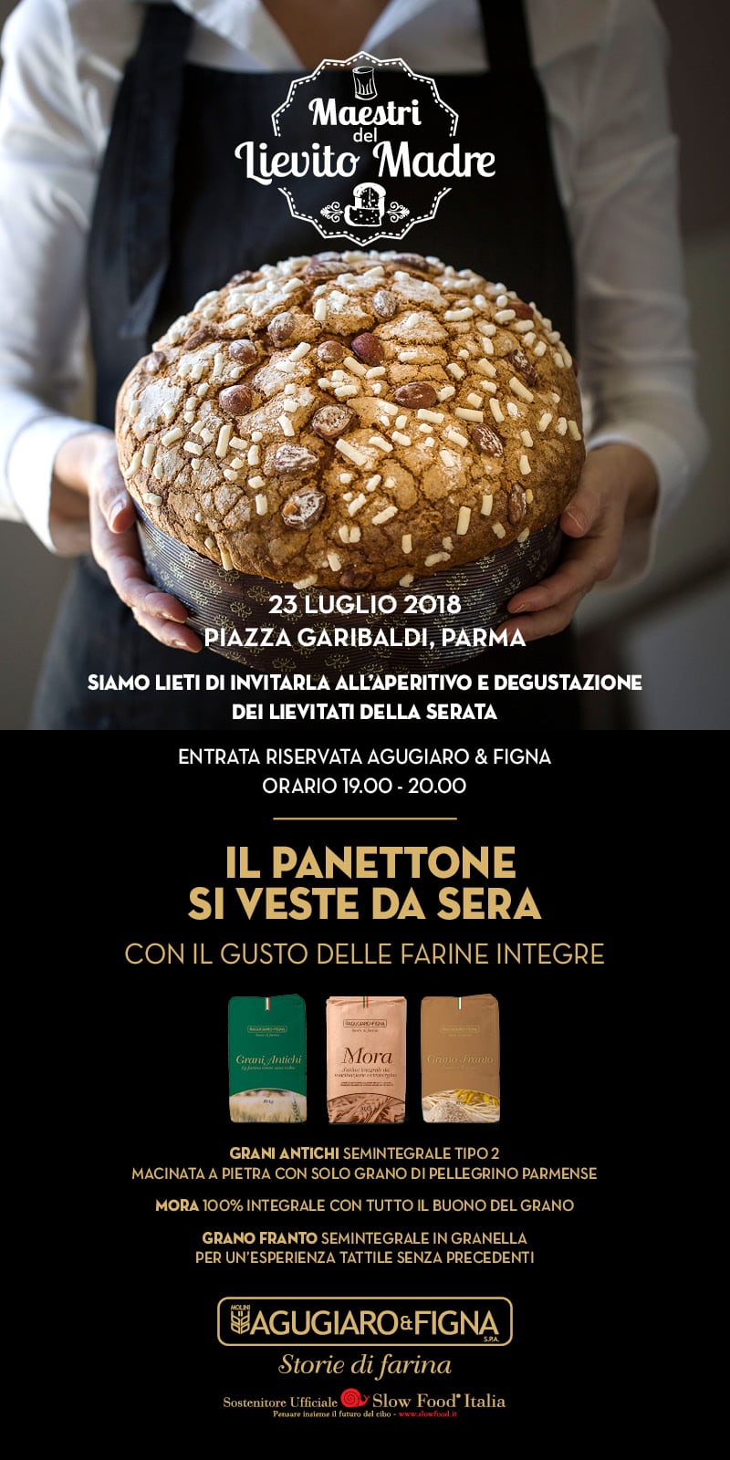 Agugiaro&Figna Molini sarà partner della nuova edizione de La Notte dei Maestri del Lievito Madre, la serata interamente dedicata ai grandi Maestri Pasticceri e ai più importanti prodotti lievitati artigianali, a Parma il 23 luglio dalle ore 20.30.
