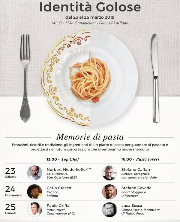 Sempre nella giornata inaugurale il via a Memorie di Pasta, comincia il tristellato Norbert Niederkofler, che sarà anche il regista a Parma a settembre della Cena dei mille. Vedremo le esibisioni di pasta nei tre giorni del Congresso: ecco qui sotto tutti gli chef in gara.