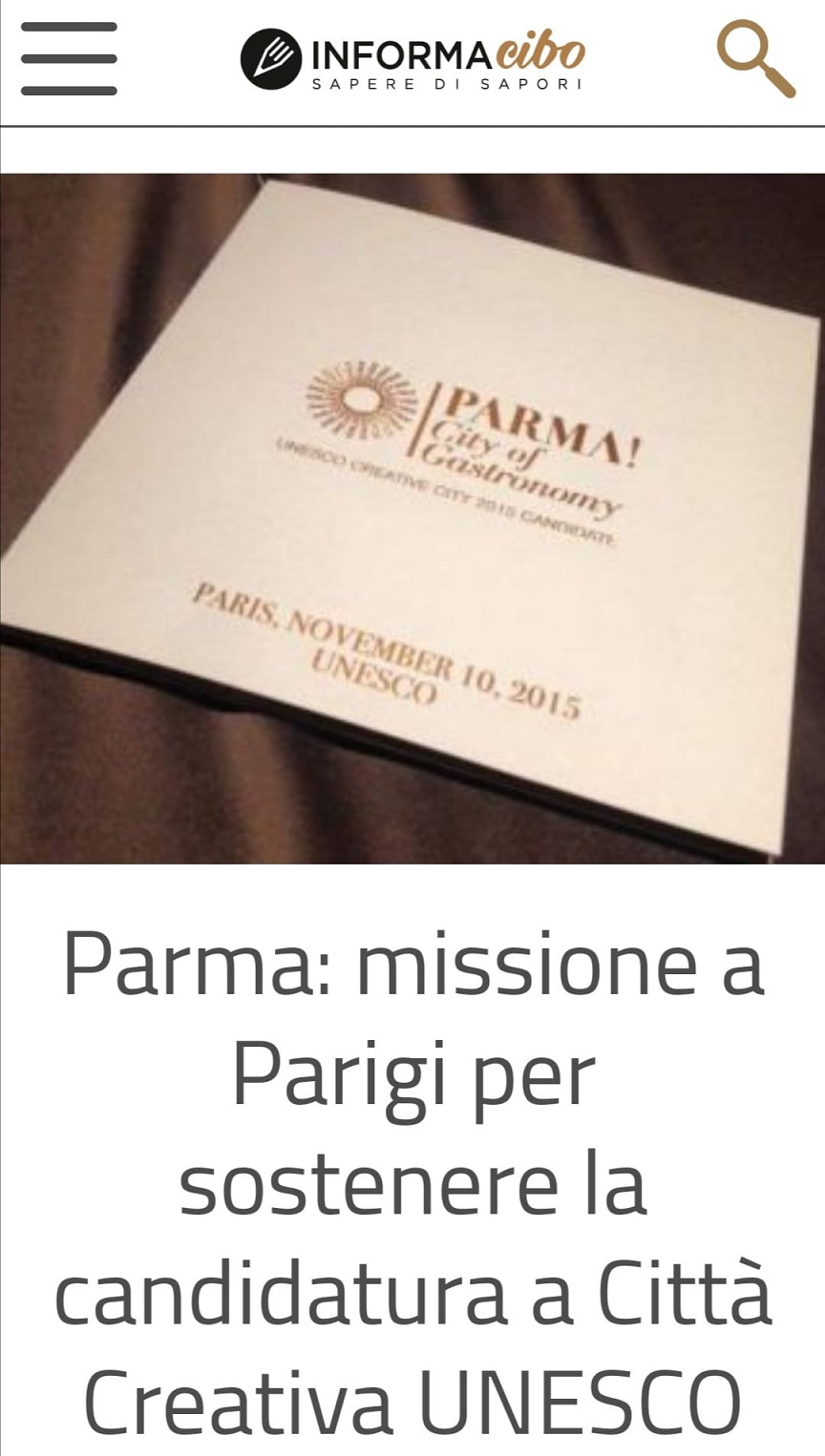Da Parigi l’11 dicembre del 2015 la notizia è stata comunicata ufficialmente al Sindaco di Parma Federico Pizzarotti da Irina Bokova, direttore generale di UNESCO.