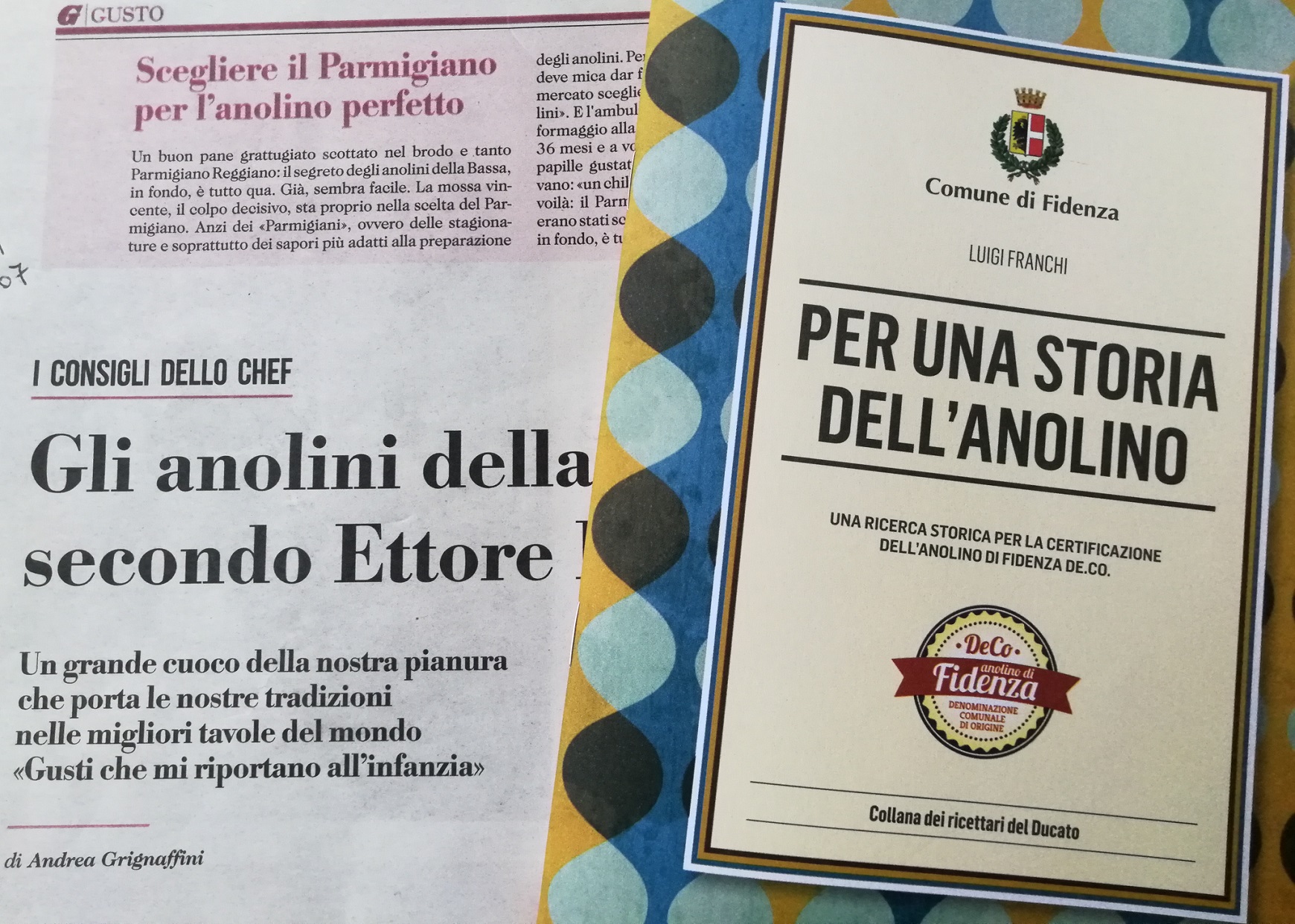 Per questo motivo l’anolino di Fidenza è diventato De.Co. (Denominazione d’Origine Comunale), grazie anche ad un piccolo libro di grande storia, scritto dal giornalista Luigi Franchi, cittadino fidentino e direttore del magazine di ristorazione sala&cucina, in cui si ripercorre la storia di questo dischetto di pasta ripiena.