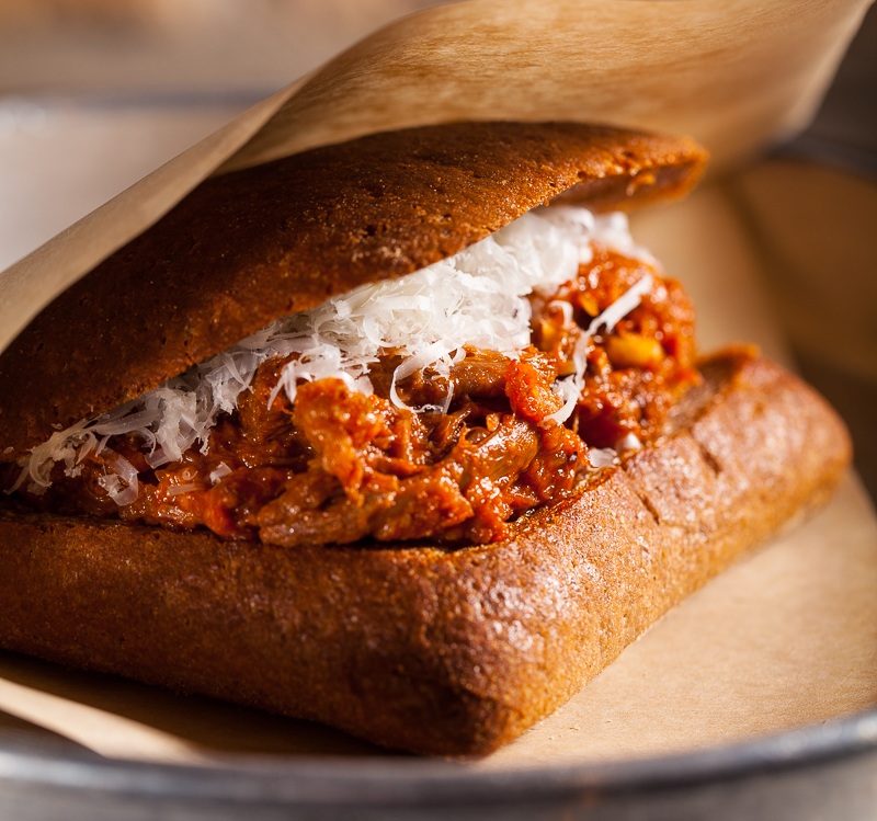 Anche in cucina, si utilizzeranno i fermentati, qui preparati da Marco Moroni. In carta tredici proposte tra cui hot-dog di wurstel artigianali serviti con salse fatte in casa, pastrami club sandwich, saccottino di coda alla vaccinara, tacos porchetta e puntarelle e bun alla lingua tonnata.