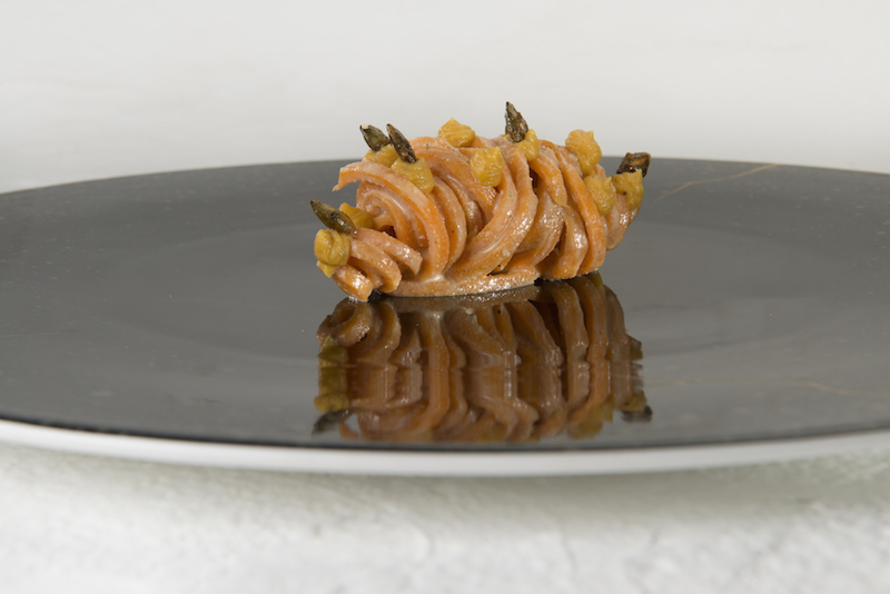 Tra le chicche da provare, i piatti che “rivoluzionano” grandi classici della cucina semplice, come come pane e salame, ma in versione “dolce” con michetta di pasta choux, salame di cioccolato bianco con mirtilli e mandorle, cremoso allo yogurt e limone, acetosella.