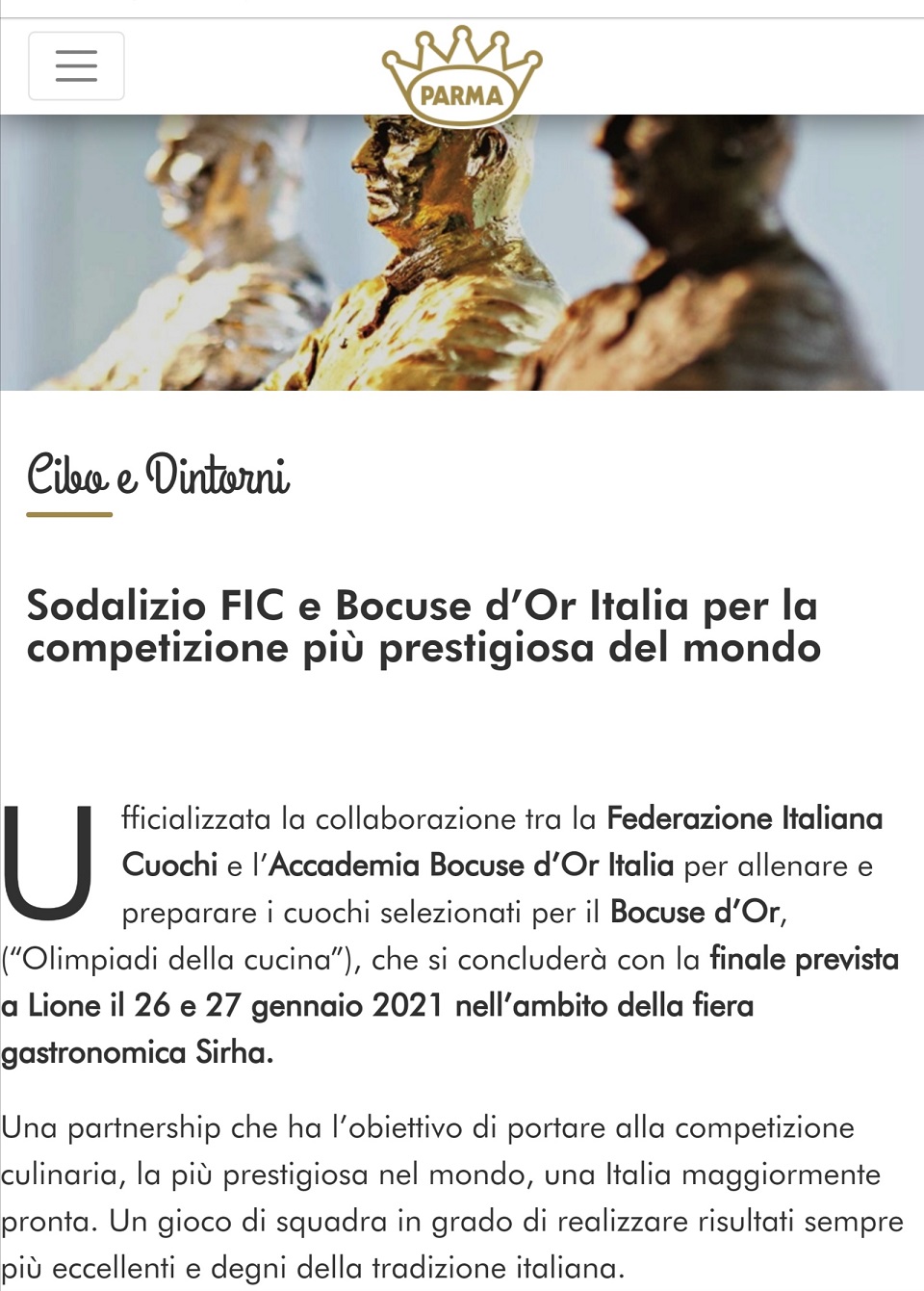 La notizia del sodalizio Fic e Bocuse d’Or Italia era stata annunciata nel numero di settembre del Corriere del Gusto, mensile web promosso dal Consorzio del prosciutto di Parma.