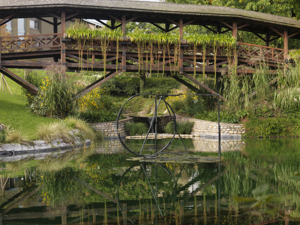Poi lungo il percorso, il parco ospita opere molto diverse tra loro: Igor Mitoraj con un’insolita scultura in marmo bianco di Carrara; il bulgaro Rado Kirov con le sue colonne specchiate che si mimetizzano nella natura; Bruno Romeda e le sue geometrie inserite nello specchio d’acqua del parco; i “Blu Guardians” del gruppo di artisti Cracking Art. E ancora “l’Egg Concept” della brasiliana Spirito Costa, un inno al ciclo della vita.