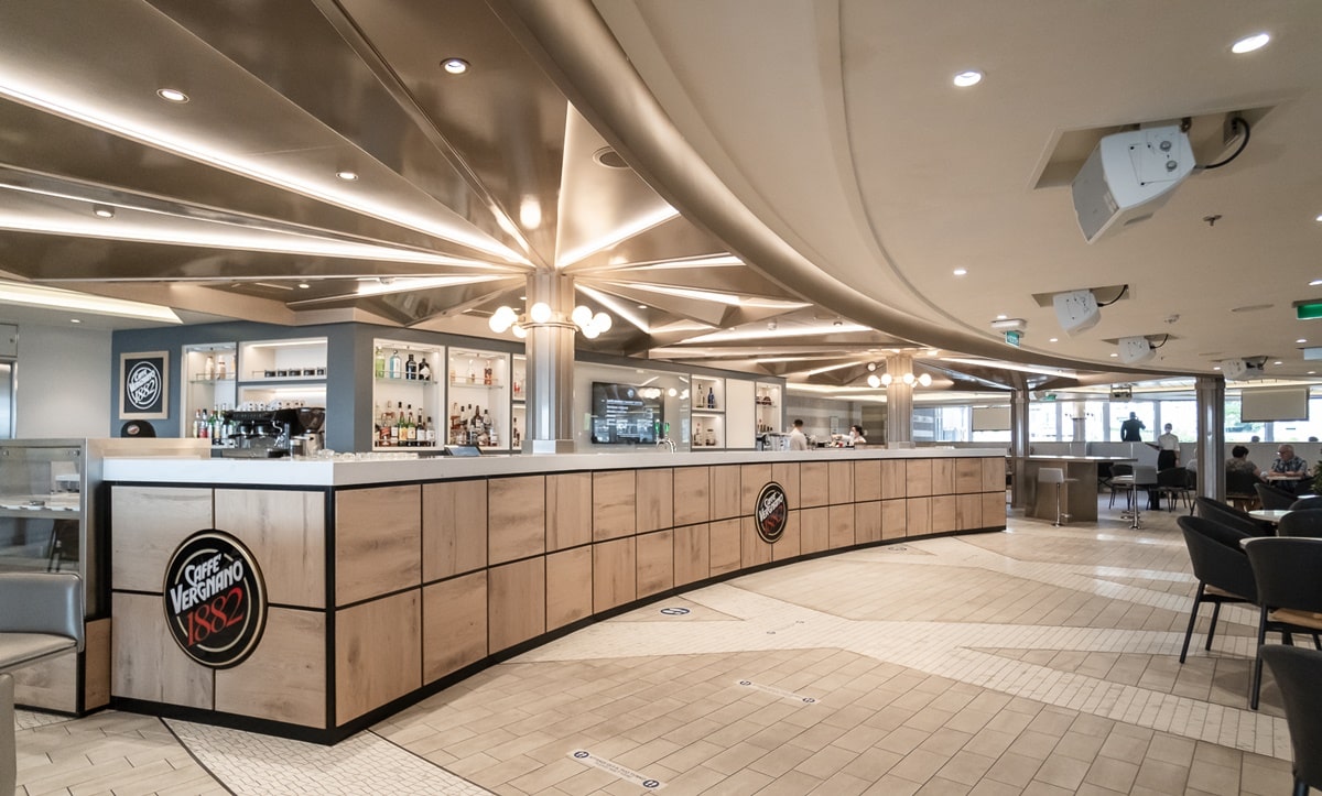 Sull’ammiraglia della flotta, Costa Smeralda, e presto anche sulla gemella Costa Toscana (attualmente in costruzione) è stata realizzata la prima caffetteria a marchio Caffè Vergnano 1882 su una nave da crociera.