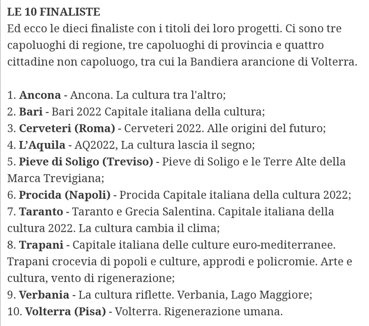 Quale sarà la Capitale italiana della cultura 2022?