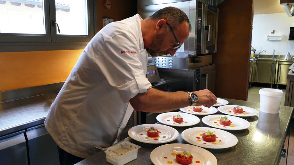Il ristorante, dotato di una suggestiva cucina a vista, che consente di vedere lo chef con la sua brigata all’opera, è aperto tutto l’anno: chiude solo dopo l’Epifania per riaprire in prossimità delle Feste Pasquali. In sala opera il maître Claudio Galbiati e in cantina Lorenzo, figlio di Elena e Giovanni. Lorenzo si occupa infatti del comparto vino, dalla produzione alla vendita, senza dimenticare il marketing, la comunicazione, oltre ad impostare le linee direttrici della ristorazione insieme al socio Andrea Ribaldone.