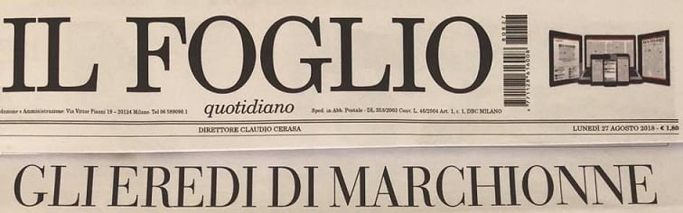 Il quotidiano Il Foglio di lunedì 27 agosto ha pubblicato in prima pagina un articolo, “Gli eredi di Marchionne”, scritto da Michele Masneri (per Minimum fax nel 1974 ha scritto il suo primo libro/romanzo Addio, Monti) dove elenca una serie di personaggi, manager e imprenditori, che, come scrive nel titolo il quotidiano diretto da Claudio Cerasa, sono gli “eredi” di Sergio Marchionne.