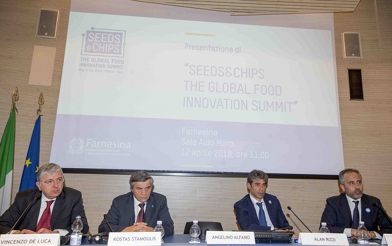 Innovazione del cibo, agricoltura sostenibile, ma anche cambiamenti climatici e robotica. Questi i temi al centro della quarta edizione di Seeds & Chips, il summit che si svolgerà a Milano congressi dal 7 al 10 maggio e che è stato presentato a Roma presso la Farnesina.