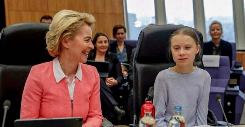 La giovane attivista svedese per il clima si trova a Bruxelles dove ha partecipato alla presentazione da parte della Commissione Ue della proposta di legge sul clima