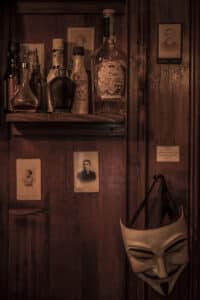 Lo speakeasy, dall’atmosfera retrò, è un luogo elegante che richiama l’era del proibizionismo, ai cosiddetti roaring twenties. Curato in ogni dettaglio con poltrone di velluto, ogni angolo è un salottino privato, arredato con abat-jour, armadi, cassettoni, grammofoni, un pianoforte e un bancone in legno che regna sulla scena.