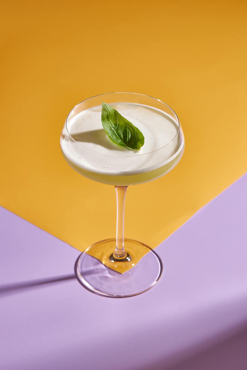 In uno shaker mettere tutti gli ingredienti, aggiungere il ghiaccio ed agitare con forza per alcuni secondi. Attraverso un colino, filtrare e versare il liquido in una coppetta precedentemente raffreddata. Guarnire con una foglia di basilico fresco.