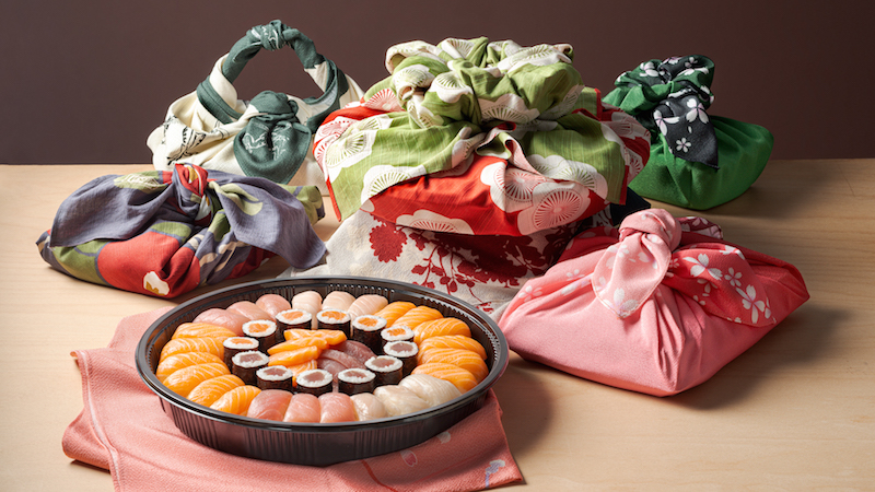 Condividere il piacere del sushi durante le Feste, con il Furoshiki
