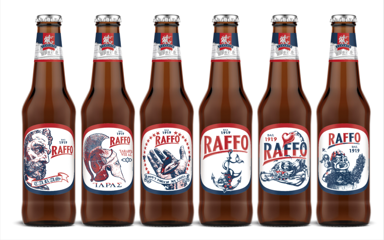 Anni fa, un’edizione limitata delle etichette di Birra Raffo, con la cozza nera tarantina nelle illustrazioni di Stencil Noire