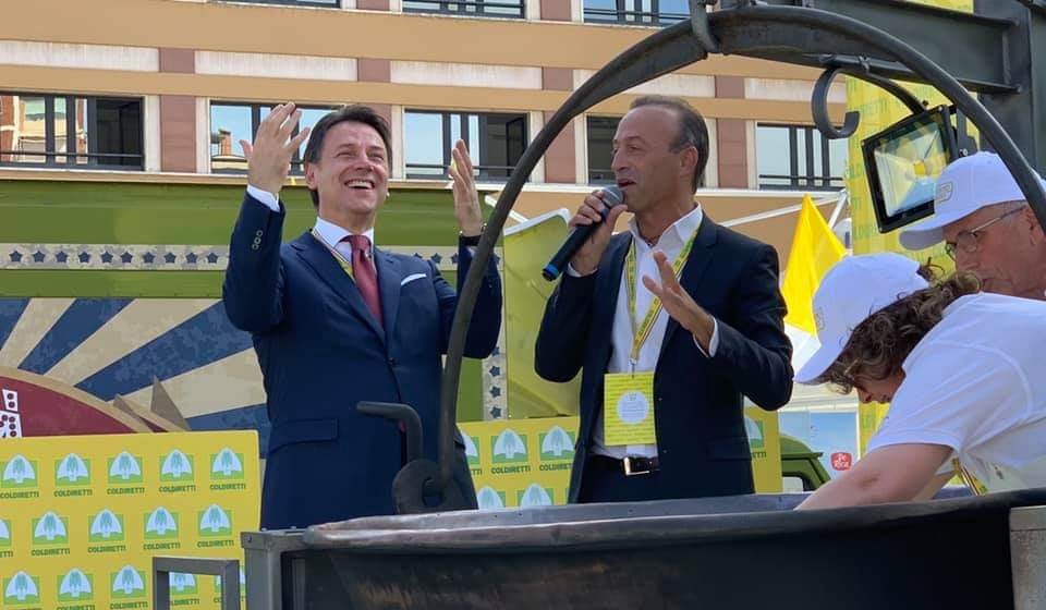 Nicoila Bertinelli con il premier Giuseppe Conte al Villaggio Coldiretti a Bologna