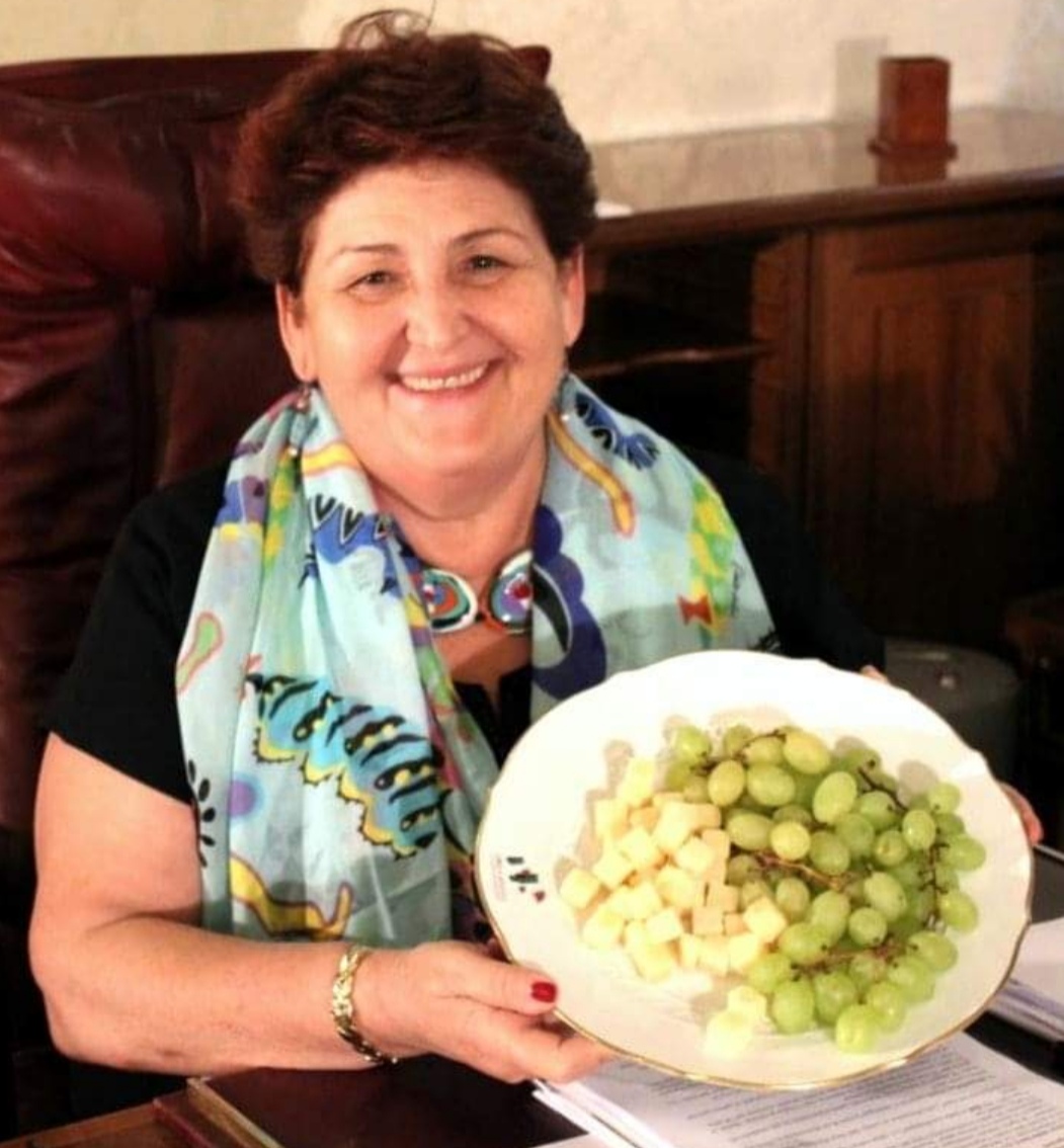 La ministra Teresa Bellanova con un piatto di uva e Parmigiano Reggiano