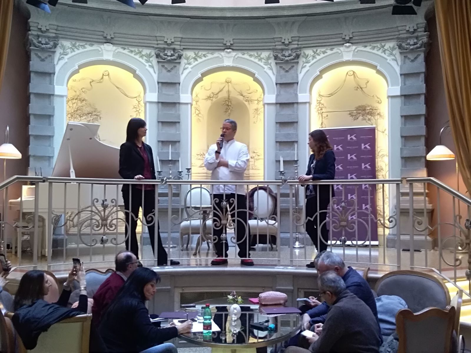 Knam svela alcune anticipazioni, tutto sorridente, mentre chiacchiera da un palcoscenico a Milano. L’occasione infatti, è quella della presentazione della Knam Experience Cooking Club, 4 giorni di showcooking, degustazioni e lezioni sul cioccolato dal 22 al 25 febbraio allo spazio “Presso” Porta Nuova, nel capoluogo lombardo.
