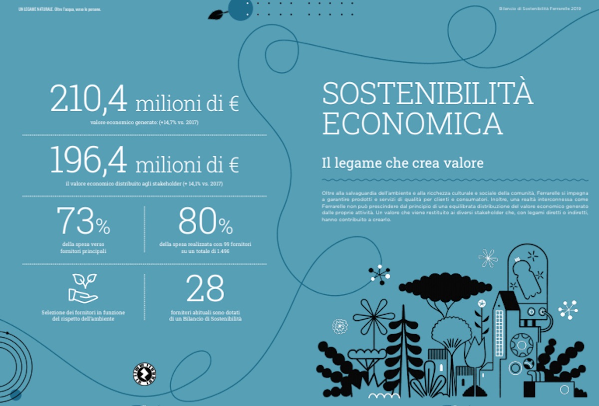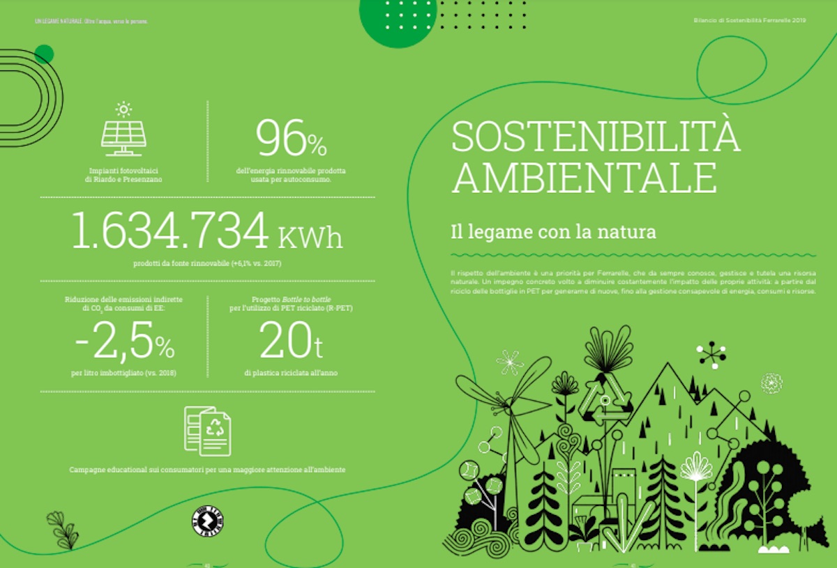 Ferrarelle S.p.A., quarto gruppo italiano per volume nel settore delle acque minerali, lancia il suo terzo Bilancio di Sostenibilità dal titolo “Un legame naturale”, per la prima volta viene realizzato un bilancio con l’utilizzo della realtà aumentata e che si rivolge direttamente al consumatore finale grazie a contenuti aggiuntivi come video, informazioni e audio. Con questa nuova edizione Ferrarelle integra l’analisi del suo impegno in sostenibilità ambientale, economica e sociale con le potenzialità offerte dalla realtà aumentata.