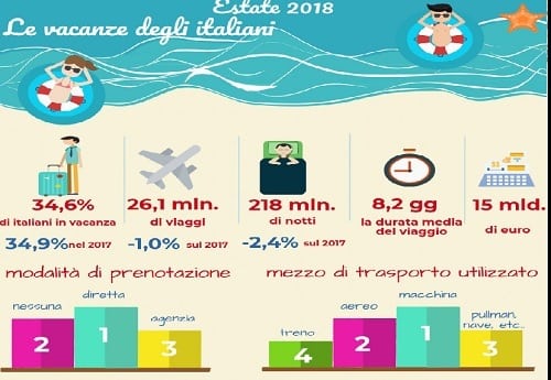La durata media delle vacanze sarà di 8,2 giorni in flessione rispetto al 2017, quando fu di 8,4 giorni.