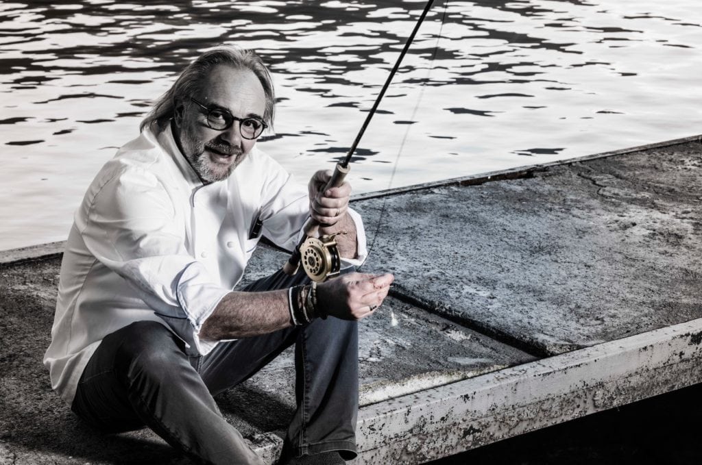 Marco Sacco è il presidente dell’Associazione Gente di Lago, oltre a essere uno che il lago lo vive a 360° con il suo ristorante Piccolo Lago, sul lago di Mergozzo. Quando chiediamo a Marco Sacco che cosa significhi per lui il lago e la sua associazione, ci risponde con un’immagine, quella del bacino interno. Ci spiega come, all’apparenza, un bacino interno come il lago possa sembrare limitativo. Ma è solo un punto di vista. Il bacino interno necessita di essere osservato e vissuto da vicino, di essere contaminato di idee e stimoli. Per lui l’acqua è stata un percorso di vita, e l’associazione è un modo per restituire qualcosa a un territorio che gli ha dato molto. Restituire è far capire al mondo chi è la gente di lago, e la loro quotidianità. Lo chef ci tiene a spiegare che Gente di Lago e di Fiume non è un’associazione di categoria: “È nata un’associazione non di categoria, ma di gente di lago pensante. Quelli che fanno del lago il proprio lavoro”. L’Associazione è partita dall’idea del lago, ma non ci sono confini. La situazione non è tanto diversa nel mare, come ha portato alla luce Pino Cuttaia, chef del ristorante “La Madia” e promotore a sua volta del progetto “Cookin’Med”, che punta a preservare l’ecosistema marittimo. Gli chef si stanno mettendo in gioco facendosi promotori di questo tipo di iniziative. “Non facciamo solo un piatto” aggiunge Marco Sacco “raccontiamo anche una storia. E dietro questa storia deve esserci un progetto”.
