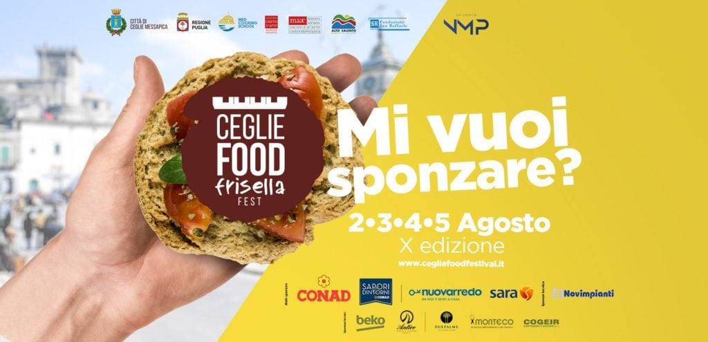 Ceglie Food & Frisella Festival. Dal 2 al 5 agosto 2018, il centro storico della città della Valle d’Itria mette in scene con grandi chef ed eventi il paniere alimentare pugliese. Protagonista da quest’anno la frisella, che si guadagna una menzione d’onore. Scopri qui il programma completo del festival di Ceglie al motto di: “Mi vuoi sponzare?”