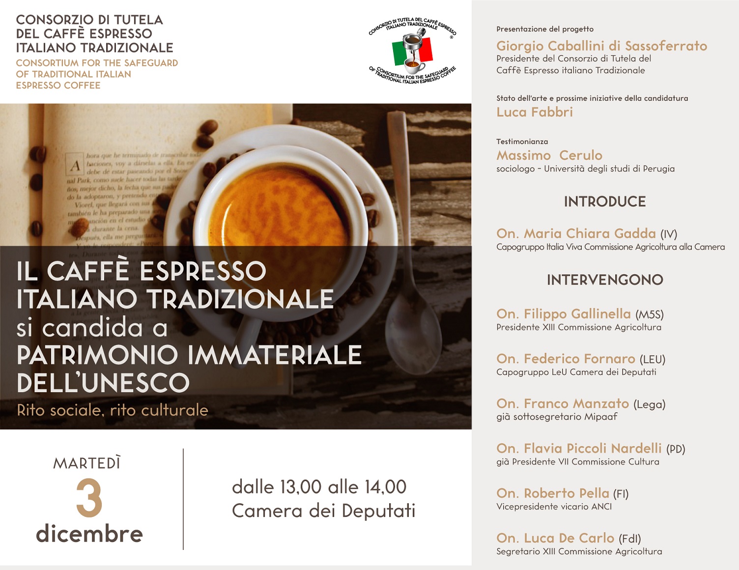 Il caffè italiano tradizionale si candida a Patrimonio immateriale dell’ Unesco. Dopo il dibattito di ieri a Napoli (leggere la notizia qui sotto e presto la cronaca sarà su queste pagine) un incontro si svolge martedì 03 dicembre dalle ore 13,00 alle 14,00 presso la Camera dei Deputati. A seguire pranzo al Bar Giolitti, in Via Uffici del Vicario, 40.