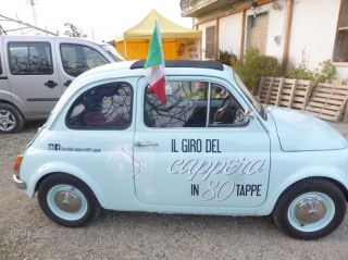 Montenero di Bisaccia gennaio 2016. Alessandro Ciulla e Edite Lanka, partiti da Agrigento il 16 gennaio scorso, arriveranno al BIT di Milano l'11 febbraio a bordo della mitica 500 datata 1971 per far conoscere la bontà del cappero di Linosa e raccontare la loro storia, mentre ascoltano quella degli altri che incontrano lungo la via.