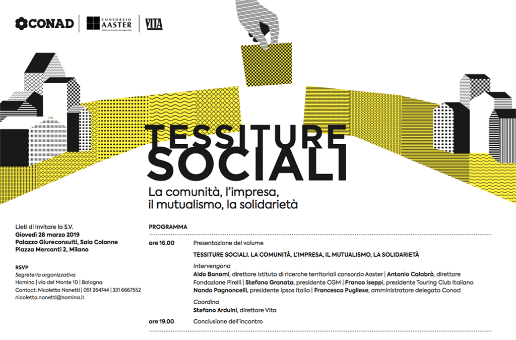 Gli autori ne discutono a Milano il 28 marzo con Antonio Calabrò (direttore della Fondazione Pirelli), Stefano Granata (presidente del consorzio Cgm), Franco Iseppi (presidente del Touring Club Italiano) e Nando Pagnoncelli (presidente Ipsos Italia). Coordina Stefano Arduini, direttore Vita.