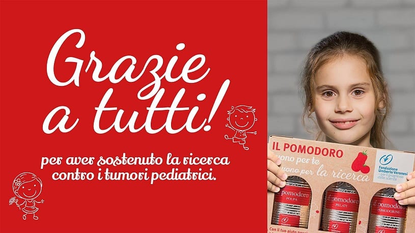Fondamentale sarà il contributo dei volontari di Fondazione Umberto Veronesi, che per un intero weekend saranno impegnati nelle piazze per sostenere la ricerca scientifica rivolta a trovare una cura alle malattie oncoematologiche dei più piccoli. Saranno loro, a fronte di una donazione minima di 10 euro, a distribuire nelle oltre 160 piazze italiane una confezione con tre lattine di pomodori, nelle versioni pelati, polpa e pomodorini: un’iniziativa resa possibile grazie alla preziosa collaborazione e sostegno di Anicav (Associazione Nazionale Industriali Conserve Alimentari Vegetali) e Ricrea (Consorzio Nazionale Riciclo e Recupero Imballaggi Acciaio). Da sempre il pomodoro rappresenta un ingrediente fondamentale nella dieta mediterranea; è un frutto con pochi zuccheri, ricco di fibre, vitamine C ed E e sali minerali, quali potassio e fosforo. Contiene molecole bioattive come i polifenoli, potenti antiossidanti, e i carotenoidi tra cui il licopene, studiato come coadiuvante nel potenziamento del sistema immunitario e nella prevenzione di alcuni tipi di tumore. Gli imballaggi in acciaio contribuiscono a garantire la conservazione delle caratteristiche nutrizionali e organolettiche del prodotto. Ogni anno in Italia si ammalano di cancro circa 1.400 bambini di età compresa tra 0 e 14 anni e circa 800 adolescenti fino a 19 anni. Grazie agli enormi passi avanti fatti dall’oncologia pediatrica e dalla ricerca scientifica, oggi il 70% di questi tumori infantili guarisce, con punte dell’’80-90% nel caso di leucemie e linfomi. Nonostante questo, le neoplasie rappresentano ancora la prima causa di morte per malattia nei più piccoli, ed è per questo che Fondazione Umberto Veronesi ha deciso di impegnarsi attivamente per dare una speranza in più ai piccoli malati oncologici e alle loro famiglie.