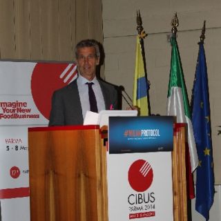 Parma 5 maggio 2014. E' stato il convegno della Fondazione Barilla Center For Food Nutrition sul tema del Protocollo di Milano ad aprire la prima giornata di Cibus alla presenza del viceministro dell'Economia Carlo Calenda.