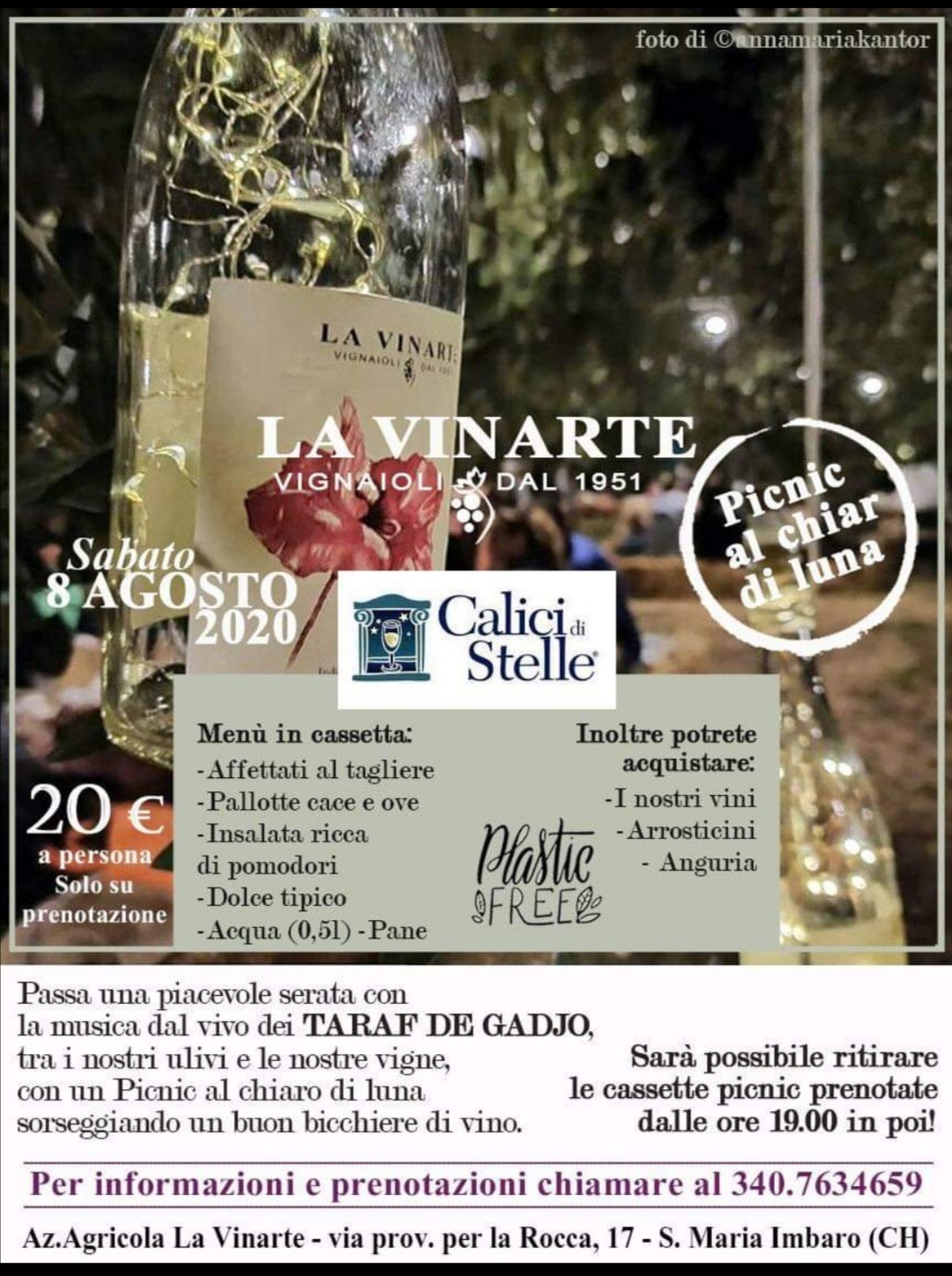 Grande serata presso l’azienda agricola La Vinarte a S. Maria Imbaro con musica dal vivo con il complesso dei Taraf De Gadjo. Una grande serata all’insegna del divertimento e della buona musica grazie alla presenza dell’apprezzatissimo violinista Domenico Mancini, conosciuto un po’ da tutti come “il geniale violinista abruzzese di Villalfonsina”.