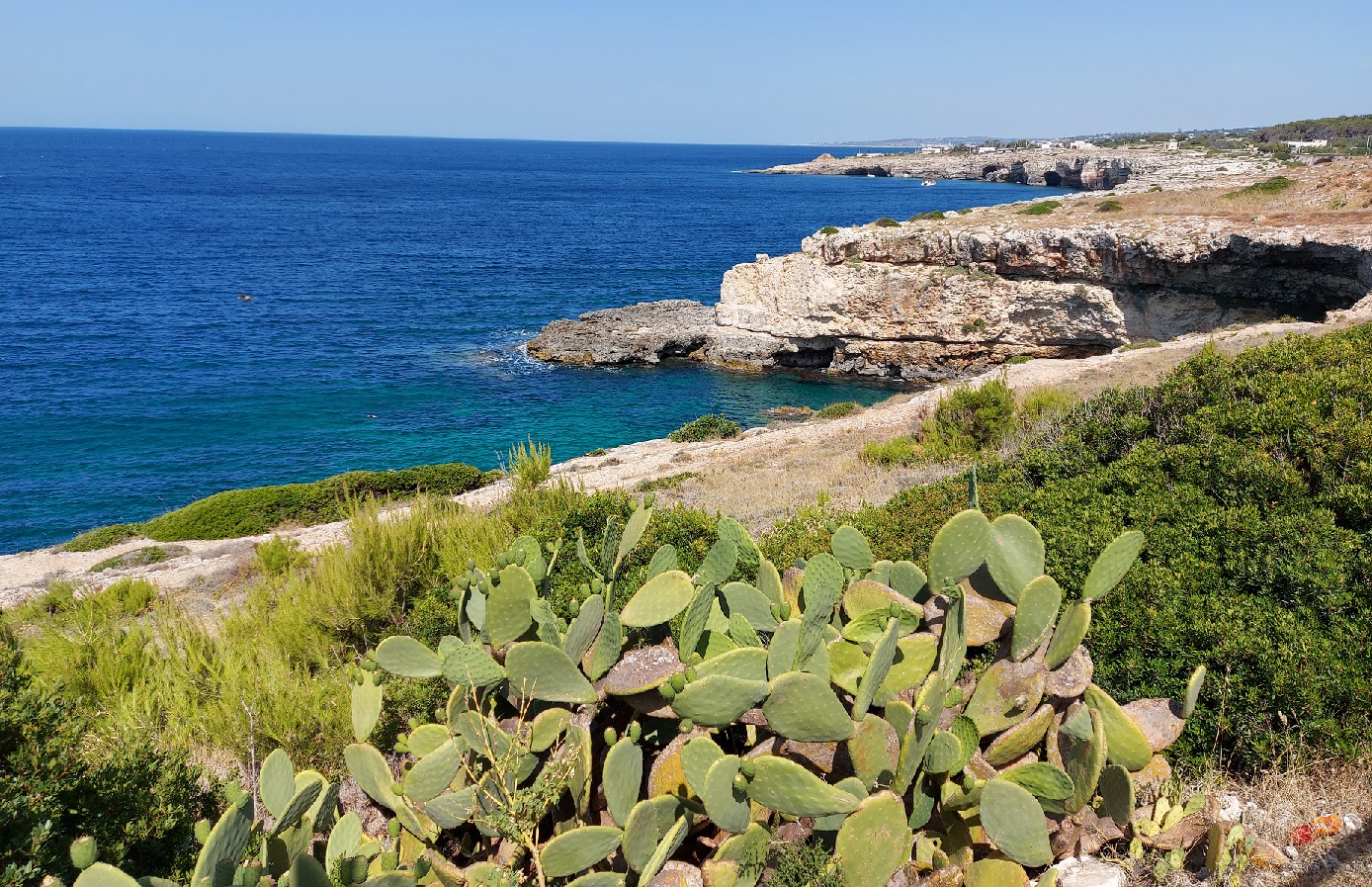 Fare gli ultimi 25 km fino a Lecce con un ginocchio dolorante e una gamba insozzata di sangue fino alle calze non è stato facile, ma ora dico che la giornata è stata positiva perché ho scoperto angoli segreti e celestiali della mia regione, angoli sconosciuti ai turisti, luoghi in cui il mare, stellato come la notte di Van Gogh, trova il pertugio giusto per fare l’amore con la pietra”.