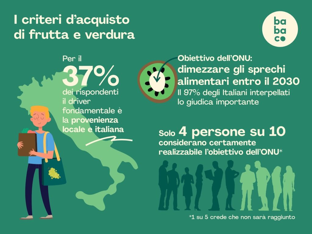 Gli italiani amano consumare frutta e verdura fresca ogni giorno e sono consapevoli dell’importanza della lotta allo spreco alimentare, ma molti non percepiscono la reale entità del problema e non hanno grande fiducia nel raggiungimento degli obiettivi ONU per il 2030. È quanto emerso dalla ricerca commissionata da Babaco Market a BVA-Doxa per avere un quadro sulle preferenze degli italiani e sulle attitudini verso lo spreco di cibo.
