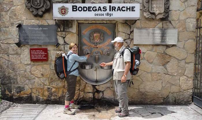 Dina e Luigi hanno viaggiato più volte sugli itinerari del Cammino di Santiago, in Spagna, imbattendosi nella famosa fontana di vino della Bodegas Irache a Estella, in Navarra, installata dall’azienda come segno di accoglienza dei pellegrini diretti al santuario.