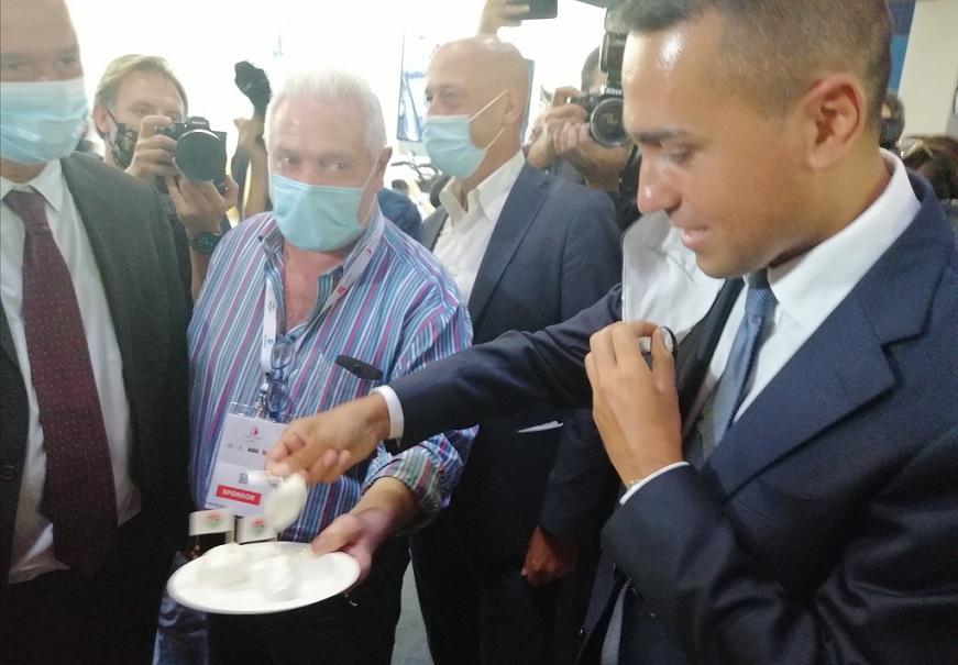 Tra le prime aree visitate dal ministro degli esteri Di Maio, al termine del suo discorso, quella che metteva in mostra i prodotti certificati della Campania, culla della “Dieta Mediterranea”, come recitava un ampio poster collocato davanti allo stand di accoglienza dei visitatori.
