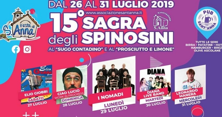 L’Associazione Sant’Anna Centobuchi e SPINOSI presentano dal 26 al 31 Luglio 2019 la “15° Sagra degli Spinosini al Sugo contadino e al Prosciutto e limone”