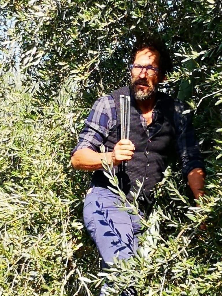 Federico Quaranta durante la raccolta delle olive sul Garda. Faticoso eh Fede?