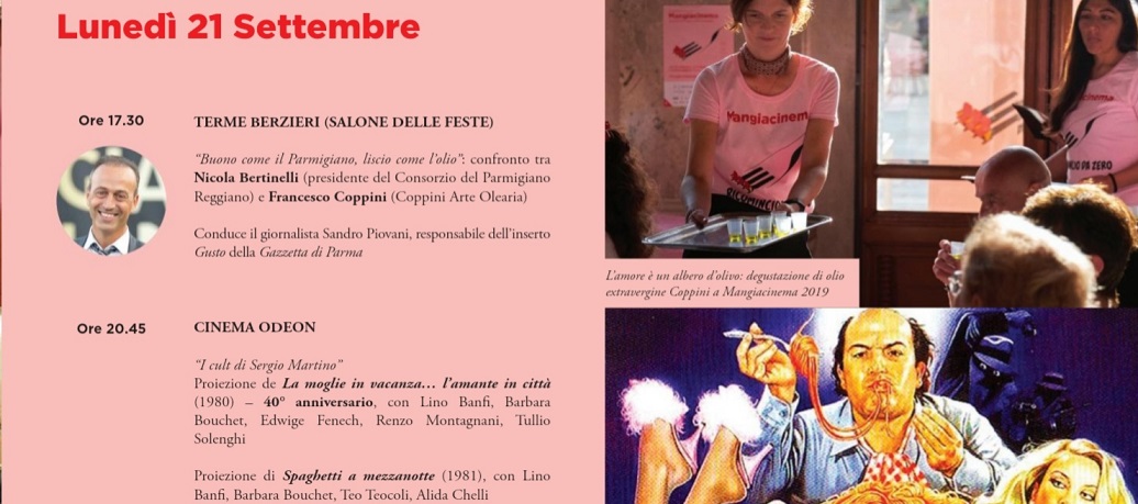 Oggi si svolgerà l’attesa confronto sul tema: “Buono come il Parmigiano, liscio come l’olio” tra Nicola Bertinelli e Francesco Coppini e alle ore 20,45 “I cult di Sergio Martino”
