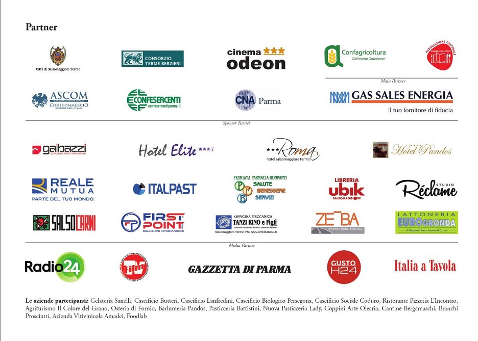 Main partner della settima edizione di Mangiacinema (che ospiterà al proprio interno anche la quinta edizione di Mangiamusica) è Gas Sales Energia. Tra i media partner, Film Tv, Radio 24 (con il programma “La rosa purpurea” di Franco Dassisti, da sempre al fianco di Mangiacinema fin dalla prima edizione del 2014), Gazzetta di Parma, Italia a Tavola, Gusto24H. Il Festival si svolge con il sostegno di Comune di Salsomaggiore Terme, Consorzio Terme Berzieri e Cinema Odeon.