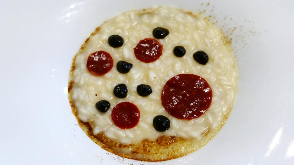 L’Insalata russa abbinata all’uovo di quaglia e alla ventresca di tonno è uno dei piatti iconici del locale, che esalta la freschezza e la semplicità dei sapori. Il risotto con crema di topinambur, aglio nero, liquirizia e ‘Nduja è un connubio perfetto tra sapori intensi e note speziate, che creano un’esplosione di gusto in bocca.
