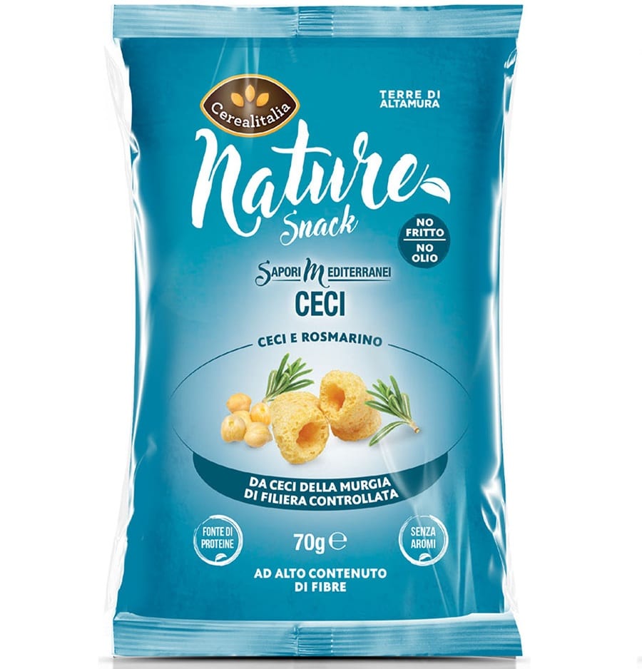 Cerealitalia I.D. S.p.A. entra nel business degli snack salati. Grazie all’esperienza maturata nella lavorazione di materie prime della terra semplici come i cereali, l’azienda presenta “Nature Snack” Sapori Mediterranei, un prodotto genuino ed assolutamente innovativo, che unisce le preziose qualità nutrizionali dei legumi, Lenticchia di Altamura IGP e Ceci della Murgia, a materie prime di alta qualità provenienti da filiera controllata e al gusto dei sapori mediterranei.