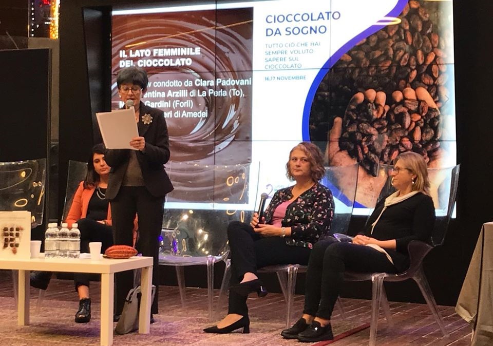 Clara Vada Padovani mentre presenta l’incontro su Il lato femminile del cioccolato