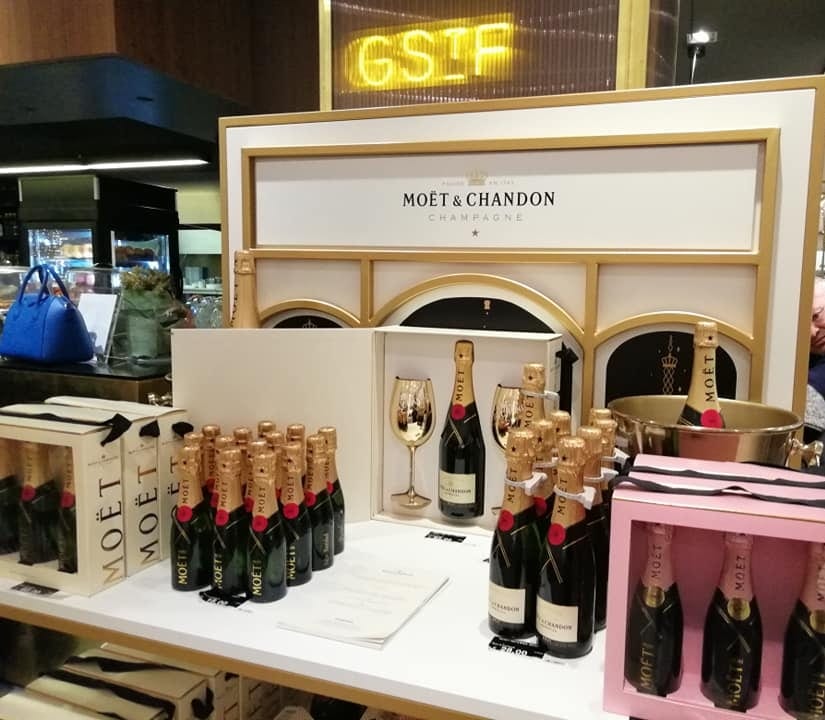 Scintillante, perchè ai suoi colori di giallo, azzurro e grigio dell’area, ora si è aggiunto quello sfavillante dell’oro. Perchè fino al 7 gennaio il God Save The Food di Rinascente ospita il TemporaryLounge bar Moet & Chandon: lo champagne del glamour e del successo dal 1743. In questo luogo è possibile prendersi una pausa dallo shopping natalizio celebrando l’attmo e brindando (ma anche acquistando) champagne per una Christmas experience all’insegna delle magiche collicine della Maison. Un golden corner di lusso dove sarà possibile regalere e regalarsi le esclusivissime limitededitiom che lo champagne più amato al mondo ha declinato in raffinate e preziosi varianti. Un premuroso personale della Moet & Chandon è a disposizione dei clienti per ogni qualsiasi informazione.