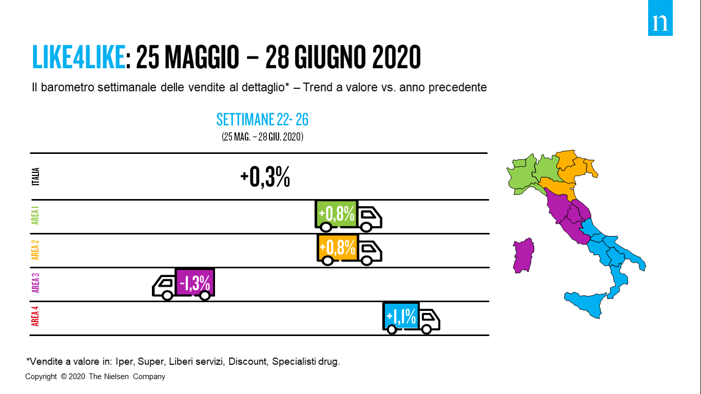 Nielsen, 25 maggio - 28 giugno 2020: rallenta la crescita per le vendite della Gdo - InformaCibo