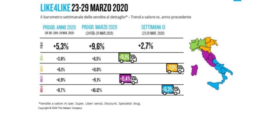 Nielsen, dal 23 al 29 marzo 2020: le vendite Gdo, la corsa rallenta
