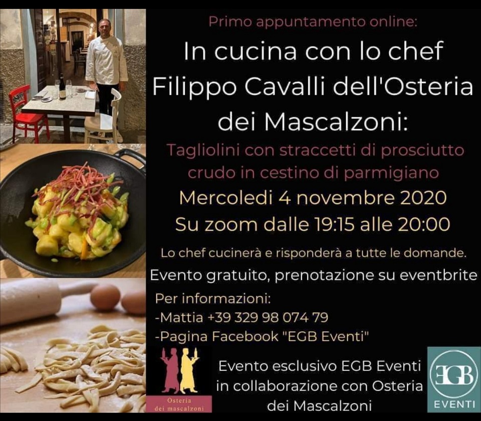 Oggi lo chef Filippo Cavalli mostrerà i dettagli e le curiosità sulla preparazione di un suo piatto. L’evento si svolgerà tramite la piattaforma Zoom. I partecipanti riceveranno il link per accedere alla casella mail che inseriranno in fase di registrazione.
