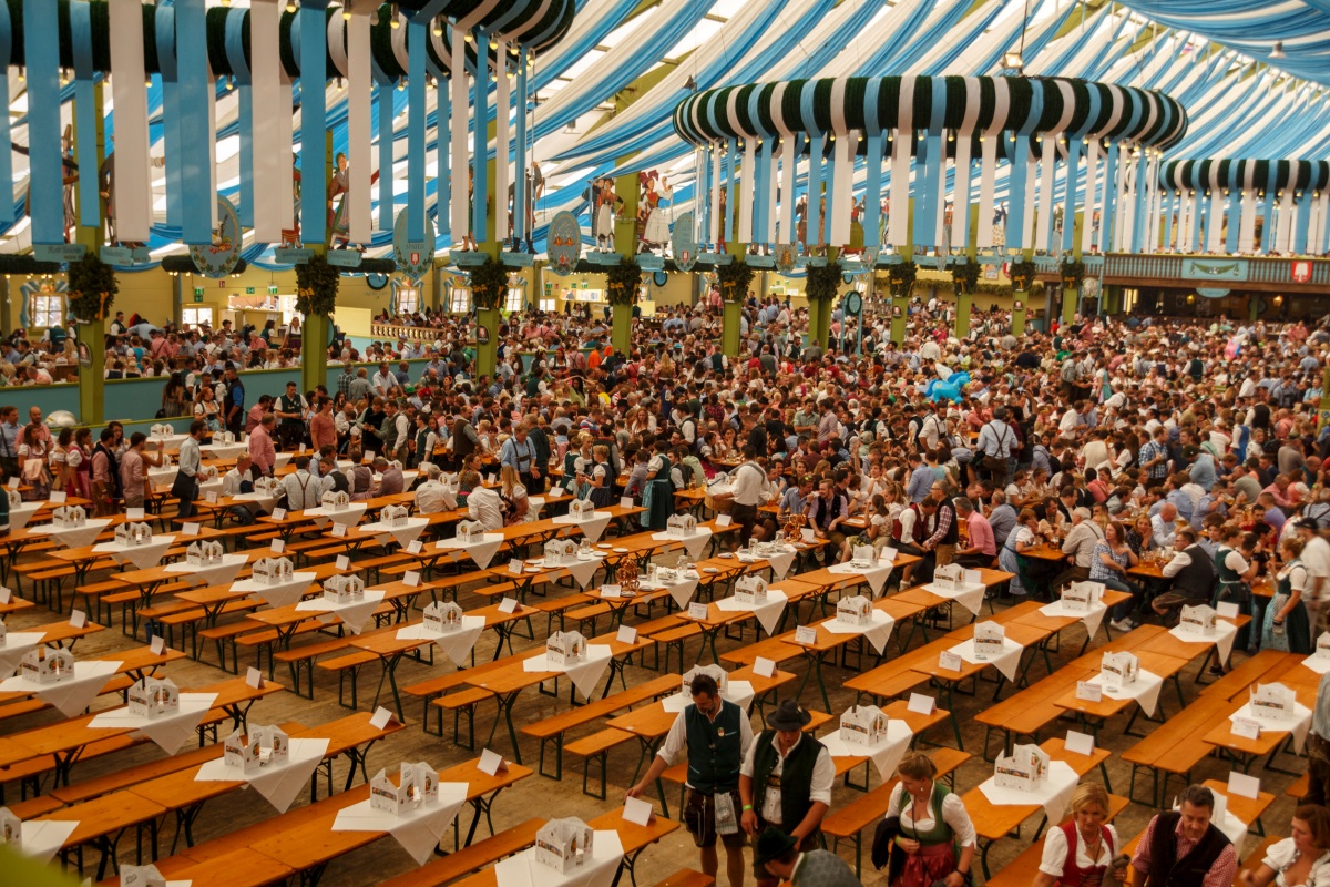 All’interno dell’Oktoberfest ci sono 35 tendoni, 14 più grandi (con 98mila posti a sedere) e 21 più piccoli, ognuno con la sua atmosfera, il suo menù bavarese e una delle sei marche di birra autorizzate a servire nei tendoni dell’Oktoberfest. Sembra un numero alto ma non lasciarti ingannare: durante i weekend, e in settimana dalle 17 in poi (quando i cittadini di Monaco finiscono di lavorare), le possibilità di riuscire a trovare un tavolo libero nei tendoni dell’Oktoberfest calano drasticamente. E il dramma è chi non è seduto non può ordinare né da bere né da mangiare.