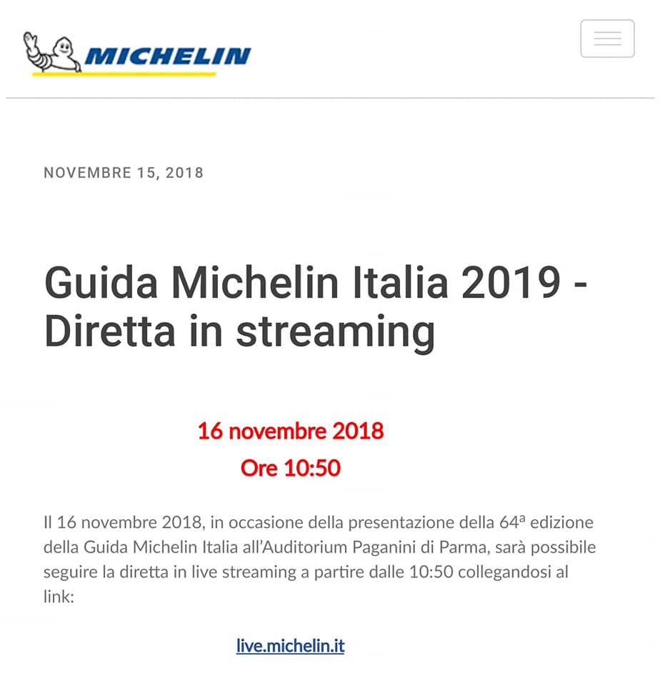 Intanto la Michelin informa che dalle ore 10,50 di venerdì 16 novembre ci sarà la diretta live streming