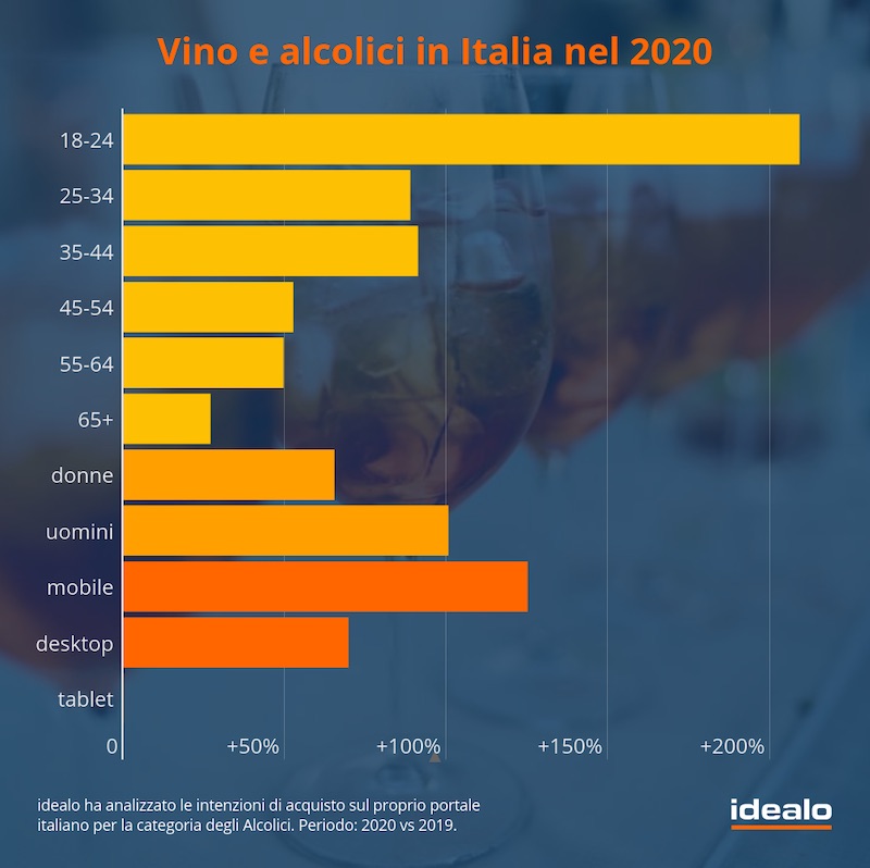 L’interesse online nei confronti degli alcolici è più che raddoppiato nello scorso anno in Italia (+110,2%) e a crescere maggiormente sono i giovani nella fascia di età tra i 18 e i 24 anni (+209,2%) secondo quanto emerso dall’ultima ricerca di idealo – portale internazionale di comparazione prezzi.